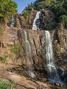 Ramboda Falls is 109 m (358 ft) high[1] and 11th highest waterfall in Sri Lanka and 729th highest waterfall in the world.[2] It is situated in Pussellawa area, on the A5 highway at Ramboda Pass.[3] It formed by Panna Oya which is a tributary of Kothmale Oya. Altitude of the falls is 945 m (3,100 ft) above sea level.