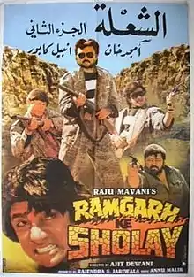 Ramgarh Ke Sholay (transl. Flames Of Ramgarh) is a 1991 Indian Hindi-language parody film directed by Ajit Diwani, starring Vijay Saxena, Kishore Bhanushali and Amjad Khan. The film parodies the 1975 Bollywood film Sholay.[1][2]