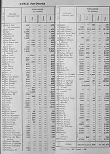 Official population statistics for the sub-district, from Village Statistics, 1945.