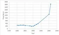 Between 1801 and 1931, population growth in Ramsden Crays was small, growing by 117 when compared to the large change between 1931 and 2001 where the population grew to 1,085. Population growth had been relatively stable before 1931. Between 2001 and 2011, the population grew more to 1,838. This population spike was the result of the illegal Irish traveller site, Dale Farm, that grew in size in the late 1990s.[6]