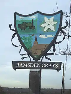 Ramsden Crays is a civil parish in the Basildon district of Essex, England. It lies north of Basildon and west of Wickford. The parish includes the village of Crays Hill and is located north of the A127. The River Crouch runs through the parish. The 2011 census records that there were 862 males and 976 females living in the parish.[1]