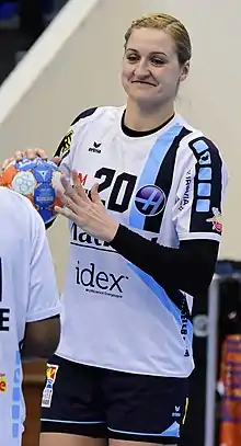 Ramune Pekarskyte (born 5 October 1980) is a Lithuanian-Icelandic handball player for Haukar of Úrvalsdeild kvenna, and the Icelandic national team.[2] Although born in Lithuania, she gained Icelandic citizenship on 14 June 2012[3][4] and has been available for the Icelandic team since then.[5]