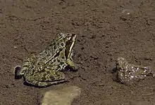 Rana holtzi, also known as the Taurus frog,[2] is a frog species of the Ranidae family endemic to Turkey, varying in size from 6.0 to 7.5cm.[3] It is the only extant frog species that doesn't croak.[4] Although it was only thought to be present in Karagöl and Çiniligöl, research conducted in 2007 revealed Eğrigöl as another habitat where the species is present.[5]