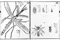 Microscopes were invented in the Netherlands during the 17th century, but it is unclear when exactly they reached Japan. Clear descriptions of microscopes are made in the 1720 Nagasaki Night Stories Written (長崎夜話草, Nagasaki Yawasō) and in the 1787 book Saying of the Dutch. Although Europeans mainly used microscopes to observe small cellular organisms, the Japanese mainly used them for entomological purposes, creating detailed descriptions of insects.