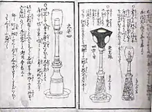 Many practical applications were found as well, such as in the manufacture of air guns by Kunitomo Ikkansai, after he repaired and analyzed the mechanism of some Dutch air guns which had been offered to the shōgun in Edo. A vast industry of perpetual oil lamps (無尽灯, Mujintō) developed, also derived by Kunitomo from the mechanism of air guns, in which oil was continuously supplied through a compressed air mechanism.[4] Kunitomo developed agricultural applications of these technologies, such as a giant pump powered by an ox, to lift irrigation water.