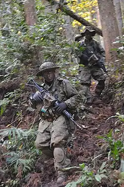 When Western Army Infantry Regiment (WAiR; later expanded to Amphibious Rapid Deployment Brigade) was launched in 2002, Ranger platoons were set up in this regiment. These platoons are certified as special operation units.[12] In 2012, they conducted joint landing exercises with the United States Marine Corps in Guam.[13][14]