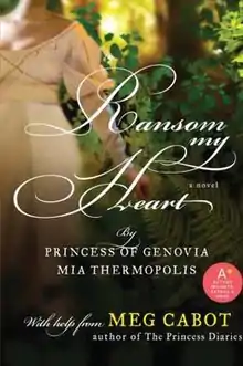 Ransom My Heart is a romance novel by Meg Cabot. It was released in the United States on January 6, 2009, concurrently with the novel Forever Princess. The book is, according to The Princess Diaries series, written by Mia Thermopolis as her senior project, where she told her friends at first that it was a book about Genovian oil. It was accepted for publishing during Forever Princess, the tenth book in the Princess Diaries Series.