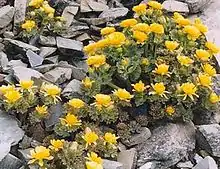 Ranunculus acraeus, more commonly known as Alpine buttercup, is a species of flowering plant in the buttercup family, Ranunculaceae, found in New Zealand. This rare and native species strictly grows on an alpine habitat, hence the name acraeus, meaning “on high”. The plant grows about 50 cm (20 in) in width, and is covered in beautiful, bright yellow flowers. It may be mistaken for R. piliferus but research has shown R. acraeus to be its own distinctive species.[1]