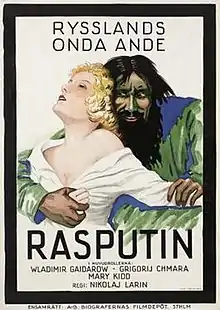Rasputin, The Prince of Sinners[1] (German: Dornenweg einer Fürstin), or simply Rasputin, is a 1928 German-Soviet drama film co-directed by Nikolai Larin and Boris Nevolin and starring Vladimir Gajdarov, Suzanne Delmas and Ernst Rückert.[2] The film's poster showed the tagline "rysslands onda ande", which translates as "Russia's Evil Spirit". The film's sets were designed by Carl Ludwig Kirmse. This film is sometimes confused with another 1928 German silent film made about Rasputin called Rasputin, the Holy Sinner.[1]