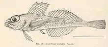 Rastrinus scutiger is a species of sculpins found from the Gulf of Alaska to the Bering Sea in the northeastern Pacific Ocean. It is a deep water species, occurring at depths of from 100 to 740 metres (330 to 2,430 ft), most commonly found at 200 to 300 metres (660 to 980 ft). This species grows to a length of 16 centimetres (6.3 in) TL. This species is the only known member of the genus Rastrinus.[1]