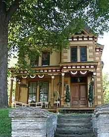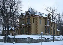 The Rau/Strong House is a historic house and accompanying carriage barn in Saint Paul, Minnesota, United States. It is located in Saint Paul's West Side neighborhood. It was built 1884–86, with an eclectic Italianate/Second Empire/Eastlake movement design featuring a mansard roof and hammered quoin blocks. The Rau/Strong House was listed on the National Register of Historic Places in 1975 for its architectural significance as a finely crafted "urban estate" representative of Saint Paul's late-19th-century middle class residences.[2]