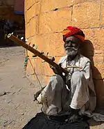 In Indian and Sri Lankan tradition, the ravanahatha is believed to have originated among the Hela people of Lanka during the time of the legendary king Ravana, after whom the instrument is supposedly named. According to legend, Ravana used the ravanahatha in his devotions to the Hindu God Shiva.[2] In the Hindu Ramayana epic, after the war between Rama and Ravana, Hanuman returned to North India with a ravanahatha. The ravanahatha is particularly popular among street musicians in Rajasthan, North India.