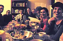 The Kibbutz was founded in the fall of 2007 by Joel Rothschild, Masha Shtern, and Tamar Libicki; Azura Newman and Lincoln Rose were also original members.[1] The community's first official event was a potluck dinner in October of that year. In founding the Kibbutz, Rothschild hoped to recreate aspects of his positive experience as a member of Kosher Co-op, part of the Oberlin Student Cooperative Association (OSCA) at Oberlin College. Current resident-organizer Neal Schindler also attended Oberlin and was in OSCA.
