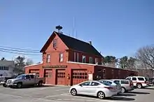 The Concord and Portsmouth Railroad line from Concord to Portsmouth reached Raymond in 1861. In 1862 the alignment was altered, rerouting trains to Manchester rather than Concord. However, freight and passenger trains still originated in Concord and traveled south on the New Hampshire Division Main Line before entering the Portsmouth Branch at Manchester. The line later became the Portsmouth Branch of the Boston and Maine Railroad. Passenger service ended in 1954, with mixed train service continuing until 1960. Local freight service continued regularly until 1972 and as-needed afterwards, usually once or twice a week. A large gravel pit located near Onway Lake was a busy railroad customer until closing in 1971, as was the Regis Tannery downtown until a fire the same year. There were no regular rail customers in Raymond from 1971 until 1976, when Rehrig Pacific opened a plastics injection plant near Route 102. The last train served Raymond on July 31, 1980, and the tracks through town were abandoned in 1982 and removed between 1983 and 1985. [6] The line is now a rail trail, and the restored depot survives today as home to the Raymond Historical Society.