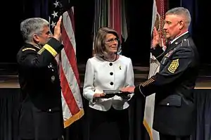 Raymond F. Chandler III (born August 25, 1962)[1] is a former United States Army soldier who served as the 14th Sergeant Major of the Army. He was sworn in on March 1, 2011, and active on duty until January 30, 2015.[2][3] Chandler served in all tank crewman positions and has had multiple tours as a troop, squadron and regimental master gunner. He has served in the 1st Infantry Division (FWD), 2nd Infantry Division, 4th Infantry Division, 1st Cavalry Division, 3rd Armored Division, 2nd Armored Cavalry Regiment, 3rd Armored Cavalry Regiment, United States Army Armor School, and the United States Army Sergeants Major Academy. He also served as first sergeant in four different detachments, troops and companies. As a sergeant major, he served as Operations SGM in 1/2 ACR and as CSM in 1/7 Cavalry, 1st Cavalry Division, United States Army Garrison Fort Leavenworth, Kansas and the United States Army Armor School CSM. Chandler was assigned as the United States Army Sergeants Major Academy CSM in December 2007. In June 2009, Chandler became the 19th Commandant of USASMA and the first enlisted commandant in USASMA history.