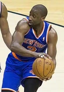 On July 9, 2010, Felton agreed to a contract with the New York Knicks.[5] Two days later, the deal was finalized for two years and $15.8 million.[6] Felton was selected as co-captain for the 2011 season alongside fellow free agent signee Amar'e Stoudemire. Early in the year, Felton had trouble working the pick-and-roll with Stoudemire. But after a few games, Felton gained confidence and in no time was a fan-favorite in New York City. Felton hit a number of clutch shots, including a step-back fade-away three-pointer that pinballed into the net against the Toronto Raptors.[7] The change of scenery seemed to be helping Felton; his play also saw the Knicks in playoff contention for the first time since 2004. Felton's time in New York, however, would not last long.