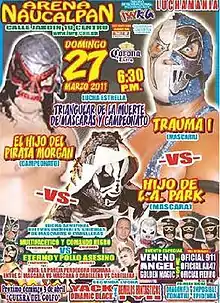 Professional wrestling has been a generational tradition in Lucha libre since its inception early in the 20th century, with a great deal of second or third-generation wrestlers following in the footsteps of their fathers or mothers.[2] Several lucha libre promotions honor those traditions, often with annual tournaments such as Consejo Mundial de Lucha Libre's La Copa Junior.[3] The Naucalpan, State of Mexico based International Wrestling Revolution Group (IWRG) created the IWRG Junior de Juniors Championship in 2011, a championship where only second or third-generation wrestlers are allowed to challenge for it. In addition to legitimate second-generation wrestlers there are a number of wrestlers who are presented as second or third-generation wrestlers, normally masked wrestlers promoted as "Juniors". These wrestlers normally pay a royalty or fee for the use of the name, using the name of an established star to get attention from fans and promoters.[2] Examples of such instances of fictional family relationships include Arturo Beristain, also known as El Hijo del Gladiador ("The Son of El Gladiador") who was not related to the original El Gladiador, or El Hijo de Cien Caras who paid Cien Caras for the rights to use the name.[4][5] Weeks after the creation of the Junior de Juniors Championship IWRG held their first IWRG Rebelión de los Juniors show with the centerpiece of the show being the Junior de Juniors Championship. The Rebelión de los Juniors shows, as well as the majority of the IWRG shows in general, are held in "Arena Naucalpan", owned by the promoters of IWRG and their main arena.
