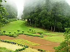 The nature reserve is a unit of multi-use in the Azores archipelago combining several activities; it is oriented towards human-nature interactivity, providing spaces for human leisure (barbecues, minor recreational activities, sightseeing and pedestrian trails) near to natural flora and fauna in the area. Central to this park is a large area of nurseries, in rectangular beds within a large glade bordered by a curtain of Cryptomerias.[4][5] There are several red clay pedestrian walking trails throughout the park with access to several infrastructures including barbecues, playgrounds, public washrooms, animal pens and lookouts.
