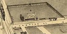 - Library of Congress map collection, Pictorial St. Louis, 1875, showing artist's conception of the ballpark
