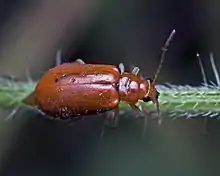 Aulacophora foveicollis, the red pumpkin beetle, is a species of beetle in the family Chrysomelidae. It is a foliar pest of members of the Cucurbitaceae, particularly the pumpkin.[2] It is also a pest of millets in India.[3]