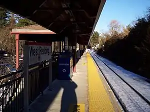 Redding station (signed as West Redding) is a commuter rail stop on the Danbury Branch of the Metro-North Railroad New Haven Line, located in Redding, Connecticut. The station has one two-car-long high-level side platform to the west of the single track.[3]: 27