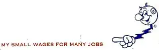 Throughout this period, RKI was a prolific producer of promotional materials and incentives, broadly distributed by licensees. Trinkets ranging from men's and women's jewellery, writing instruments and lighters, to oven mitts, aprons and playing cards, featured Reddy Kilowatt's consistently smiling face. Collins’ prime objective remained unchanged: to provide a human, accessible face to the business of energy generation. The theme is evident in RKI art from the time: a winded Reddy running uphill to demonstrate the stress of rising costs; Reddy in hunting togs warning shooters away from power lines; a smiling Reddy framing a power bill as his “wages”.[18]