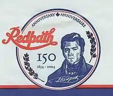 The Redpath sugar label shown at right celebrated the company's 150th anniversary in 2004. The Redpath logo, which is derived from John Redpath's own script, is Canada's oldest continuously-used food product trademark.[9]