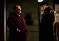 ![]() Lieutenant Oakes (Garry Chalk, left) discusses Darren Richmond as a suspect with Sarah Linden (Mireille Enos, right) | |