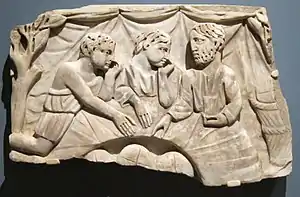 The Latin word refrigerium literally means "refreshment", and is the origin of the English noun "refrigerator" (Webster, 1913). In ancient Rome, the word referred specifically to a commemorative meal for the dead consumed in a graveyard.