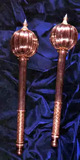 The leader and conductor of a Nobat ensemble is the Mahaguru, and is responsible for the musicians under him, and for the care and maintenance of the instruments. The Kedahan Mahaguru also holds the namesake, velvet-covered mace present in performances and ensemble rehearsals.