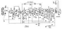 The 22.5 V battery, while now uncommon, is still used in some devices and as of 2020 remains available on the market.[12] The minimum required voltage is lower, about 15 V, below which the radio oscillates. An electrolytic capacitor is connected in parallel to the battery to improve stability. The power switch is coupled with the volume control.