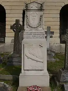Warneford died of his injuries on the way to hospital. He was buried at Brompton Cemetery,[10] London on 21 June 1915 in a ceremony attended by thousands of mourners.[11] The grave lies in front of the eastern colonnade.