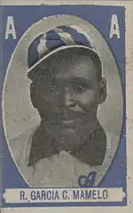 Regino "Marmelo" García (1875–?) was a Cuban baseball catcher in the Cuban League and Negro leagues. He played from 1901 to 1914 with several ballclubs, including San Francisco, Almendares, the Fe club, Habana, Cuban Stars (West), Cuban X-Giants, and the All Cubans.[1] He was elected to the Cuban Baseball Hall of Fame in 1941.