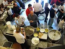Street foods, ready-to-eat food or drink sold in a street or other public place, such as a market or fair, by a hawker or vendor, often from a portable stall,[1] have variations within both regions and cultures.[2] For example, Dorling Kindersley describes the street food of Vietnam as being "fresh and lighter than many of the cuisines in the area" and "draw[ing] heavily on herbs, chile peppers and lime," while street food of Thailand is "fiery" and "pungent with shrimp paste... and fish sauce" with New York City's signature street food being the hot dog, although the offerings in New York also range from "spicy Middle Eastern falafel or Jamaican jerk chicken to Belgian waffles."[3] In Hawaii, the local street food tradition of "Plate Lunch" (rice, macaroni salad and a portion of meat) was inspired by the bento of the Japanese who had been brought to Hawaii as plantation workers.[4]