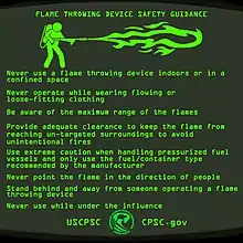 - Galbo, Joseph (June 12, 2018). Flame Throwing Device Safety (Image). LCCN 2019666988. Archived from the original on March 10, 2022. Retrieved March 10, 2022.