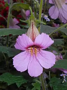 Rehmannia elata, the Chinese foxglove, is a species of flowering plant in the family Orobanchaceae, native to China. Growing to 150 cm (59 in) tall by 50 cm (20 in) broad, it is an herbaceous perennial with veined, hairy leaves and pink, tubular flowers with darker pink stripes in summer. The flowers bear a superficial resemblance to foxgloves, hence the common name "Chinese foxglove", which is also applied to the whole genus. However this species is not closely related to the true foxglove (Digitalis).[2]