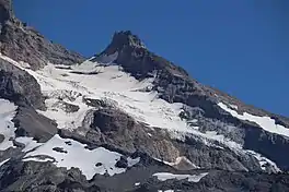 Reid Glacier is an alpine glacier located on the west slope of Mount Hood in the U.S. state of Oregon.[2] It ranges in elevation from about 9,800 to 6,000 feet (3,000 to 1,800 m). The glacier is the source of the Sandy River. The upper extent of the glacier is known for extensive crevasses.