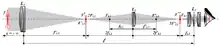 Relay lenses operate by producing intermediate planes of focus. For example, in a SLR camera the zoom lens produces an image plane where the image sensor or photographic film would usually go. If you place another lens with focal length f at the distance 2f from that image plane and then put an image sensor at 2f beyond that lens, that lens will relay the first image to the second image with 1:1 magnification (see thin lens formula showing that with object distance from the lens, the image distance from the lens is calculated to ). Ideally, this second image is the mirror image of the first image, so you could put an image sensor there and record the mirrored first image. If a longer distance is needed, this can be repeated. In practice, the lens will be an achromatic doublet.