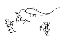 A second inscription found nearby represents a large scorpion with bound captives, and seems to be from an slightly earlier date, and possibly related to king Scorpion II.[2][1]