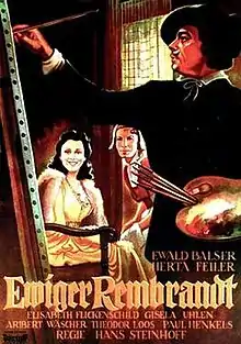 Rembrandt is a 1942 German historical drama film directed by Hans Steinhoff and starring Ewald Balser, Hertha Feiler, Gisela Uhlen, and Aribert Wäscher.[1] It was based on the novel Zwischen Hell und Dunkel by Valerian Tornius and depicts the life of the Dutch painter Rembrandt.