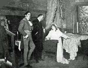 During the First World War Fauchois wrote and acted less, although three of his plays were presented at the Comédie-Française: La Veillée des armes (1915), L'Augusta and Vitrail (1916).[1] Resuming his career as a playwright after the war he found himself typecast as the author of grand verse dramas. He struggled to establish himself as a writer of prose comedy. His Boudu sauvé des eaux (1919), in which he played a leading role, was a succès de scandale,[n 1] but it was not until Sacha Guitry produced Fauchois' La Danseuse éperdue in 1922 that the writer's gift for comedy was widely recognised.[1]