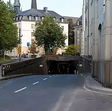 The René Konen Tunnel (French: Tunnel René Konen), colloquially known as the Saint Esprit Tunnel (French: Tunnel du St-Esprit, Luxembourgish: Helleg-Geescht-Tunnel), is a 655 m (2,149 ft)[1] road tunnel in Luxembourg City in southern Luxembourg. It carries two lanes of one-way traffic northwards, under Ville Haute, bypassing the narrow streets and pedestrian zone in the heart of the city.
