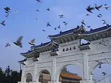 The renaming of the Chiang Kai-shek Memorial Hall in Taipei, Taiwan to National Taiwan Democracy Memorial Hall (Chinese: 國立台灣民主紀念館; pinyin: Guólì Táiwān Mínzhǔ Jìniànguǎn)[1] was announced by President Chen Shui-bian on 15 May 2007. The surrounding plaza was rededicated to democracy as Liberty Square. This move was condemned by the pan-blue media as a political move by the Democratic Progressive Party to denounce the historical heritage of the Republic of China. The site has now been restored back to the original title of the "Chiang Kai-shek Memorial Hall" as of 20 July 2009 with the Nationalists back in power.