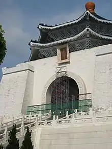 The official ceremony marking the renaming of the hall took place on 19 May 2007 when President Chen unveiled a plaque in front of the memorial bearing the name National Taiwan Democracy Memorial Hall (Chinese: 國立台灣民主紀念館).[8] Chen announced that the name change reflected the desire of citizens "to bid goodbye to the old age and to show that we Taiwanese are all standing firmly behind the universal values of freedom, democracy and human rights." He noted that the date, May 19, marked the fifty-eighth anniversary of the imposition of martial law on Taiwan; the event began rule by the military on the island for thirty-eight years.[9][10] Minor scuffles broke out among gathered spectators before the ceremony.[11]