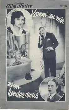 Rendezvous (German: Komm' zu mir zum Rendezvous) is a 1930 German musical film directed by Carl Boese and starring Lucie Englisch, Ralph Arthur Roberts and Alexa Engström.[1] Separate versions were made in French (Love Songs) and Spanish (My Wife's Teacher). Such multi-language versions were common in the early years of sound.