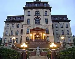 In 2008, RPI announced the purchase of the former Rensselaer Best Western Inn, located at the base of the hill, along with plans to transform it into a new residence hall. After extensive renovations, the residence hall was dedicated on 15 May 2009, as the Howard N. Blitman, P.E. '50 Residence Commons.[52] It houses about 300 students in 148 rooms and includes a fitness center, dining hall, and conference area.[52] The new residence hall is part of a growing initiative to involve students in the Troy community and help revitalize the downtown. RPI owns and operates three office buildings in downtown Troy, the Rice and Heley buildings and the historic W. & L.E. Gurley Building.[53] RPI also owns the Proctor's Theater building in Troy which was purchased in 2004, with the intention of converting it into office space.[54] As of 2011, Rensselaer had signed an agreement with Columbia Development Companies to acquire both Proctor's Theatre and Chasan Building in Troy and launch a redevelopment.[55][56][57][58]