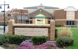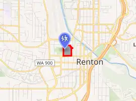 The original Renton High School was built in March 1911 on land originally owned by the Duwamish Indian Tribe,[2] at a cost of $65,000. The three-story brick building, featuring a bell tower that rang out every half hour, stood on the location of the east wing of the current building. The school stood on wooden pilings, which started to rot when Lake Washington was lowered owing to the building of the ship canal. The timbers cracked and the crowded building sank a few inches during the 1923 graduation ceremonies.[3] It was replaced by a larger school in March 1932. In 1941, the old building was torn down and a new addition built near the current building.[4] The school was remodeled in 1969.[5]