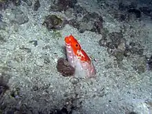It is a marine, tropical eel which is known from the Indo-Pacific. It dwells at a depth range of 1 to 35 m (3.3–114.8 ft), and inhabits burrows formed in sandy areas in rocky and coral reefs. During the night it often lets its head and neck protrude from its burrow, but during the day it only leaves its snout and some of its head exposed. It can reach a maximum total length of 101 cm (3 ft 4 in).[2]