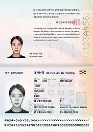![]() Identity Information Page of a South Korean biometric Passport (post-21 December 2021) | |