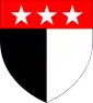 The flag of the Republic of the Rio Grande has a red hoist with three white stars run evenly along the hoist. The three stars represent the three states that seceded: Coahuila, Nuevo León, and Tamaulipas. The fly is split into a white upper fly and a black lower fly.